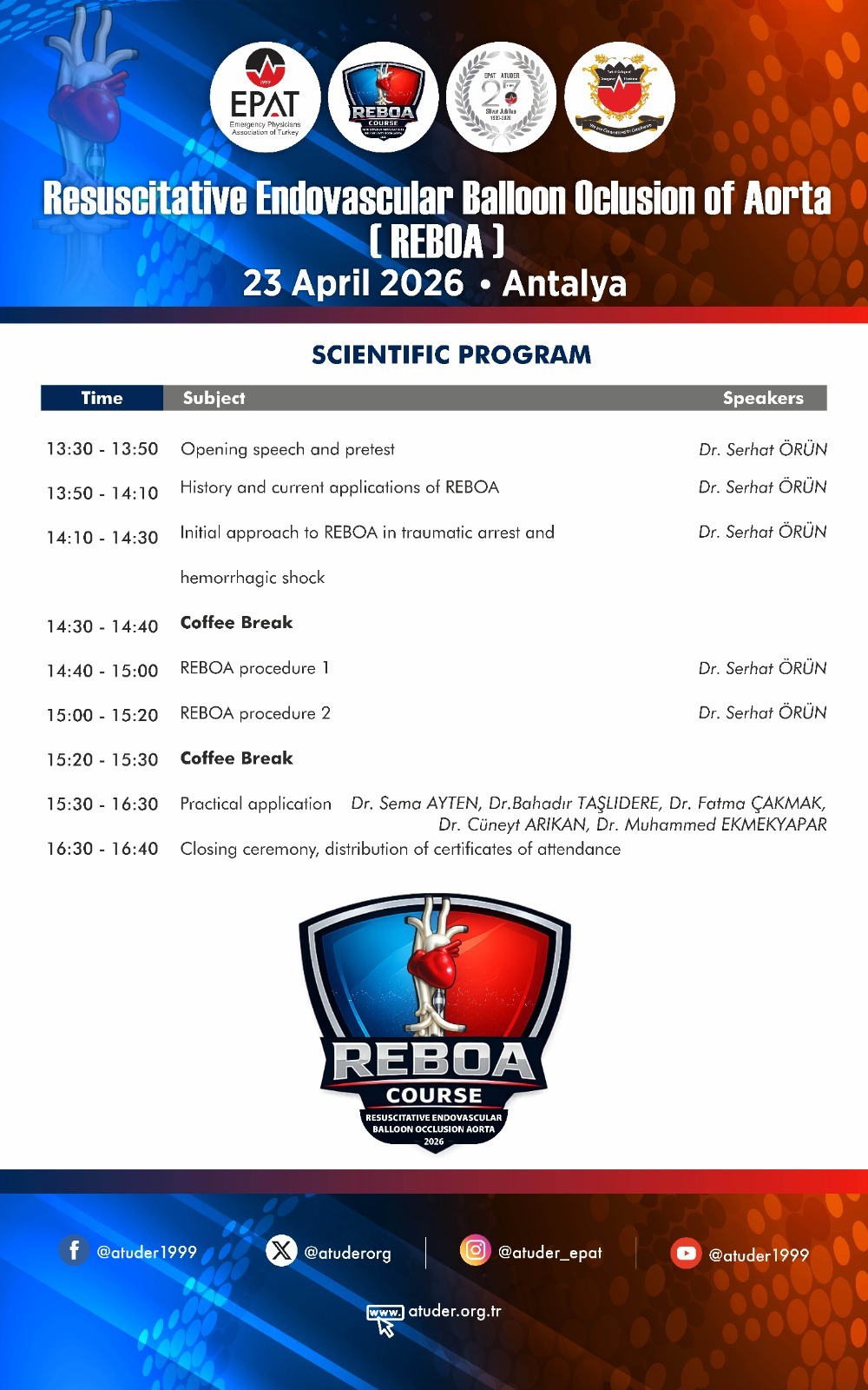 - Explanation : REBOA Course Antalya registration fee