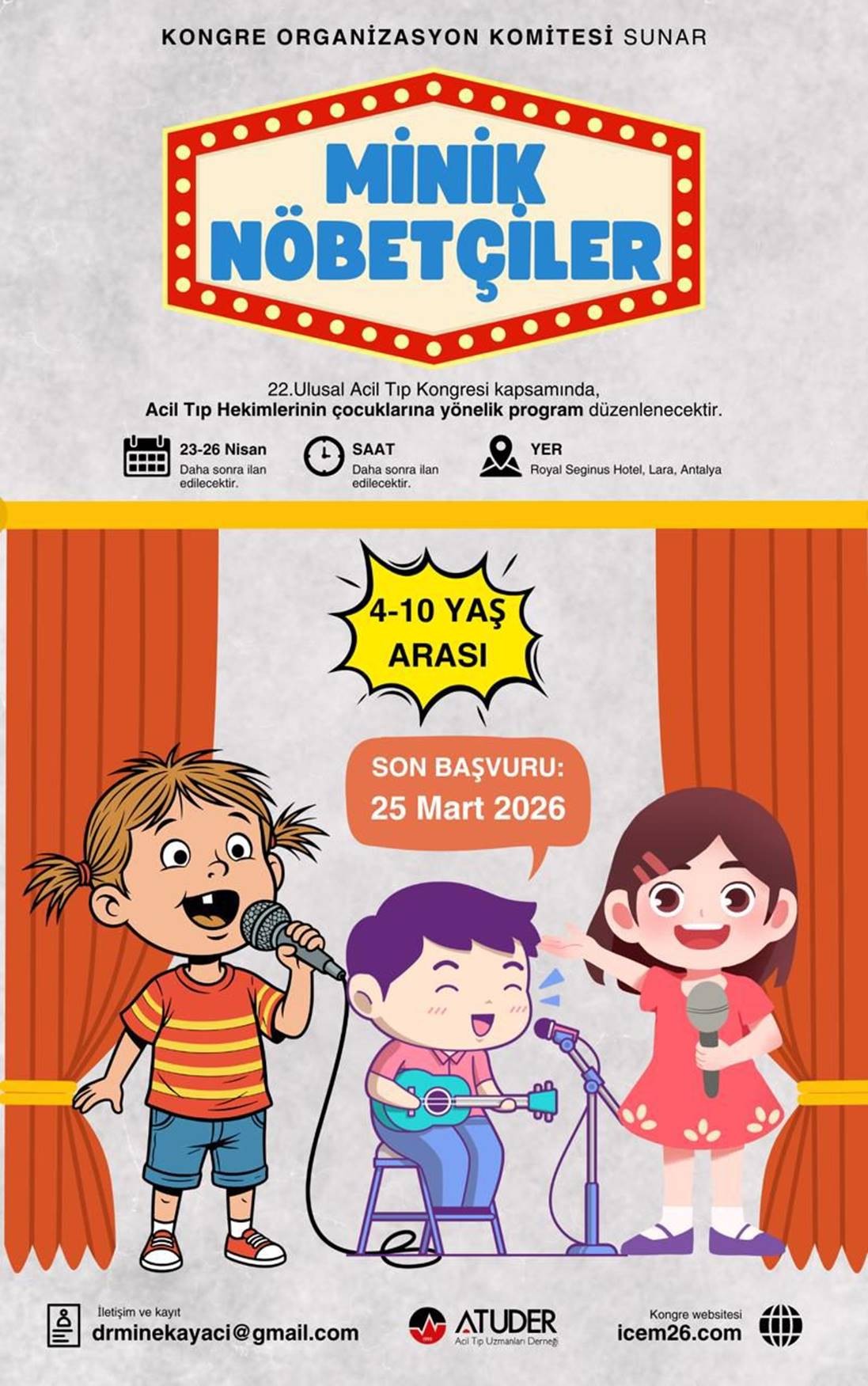 22. Ulusal Acil Tıp Kongresi kapsamında, acil tıp hekimlerimizin çocuklarını sahnede ağırlıyoruz.